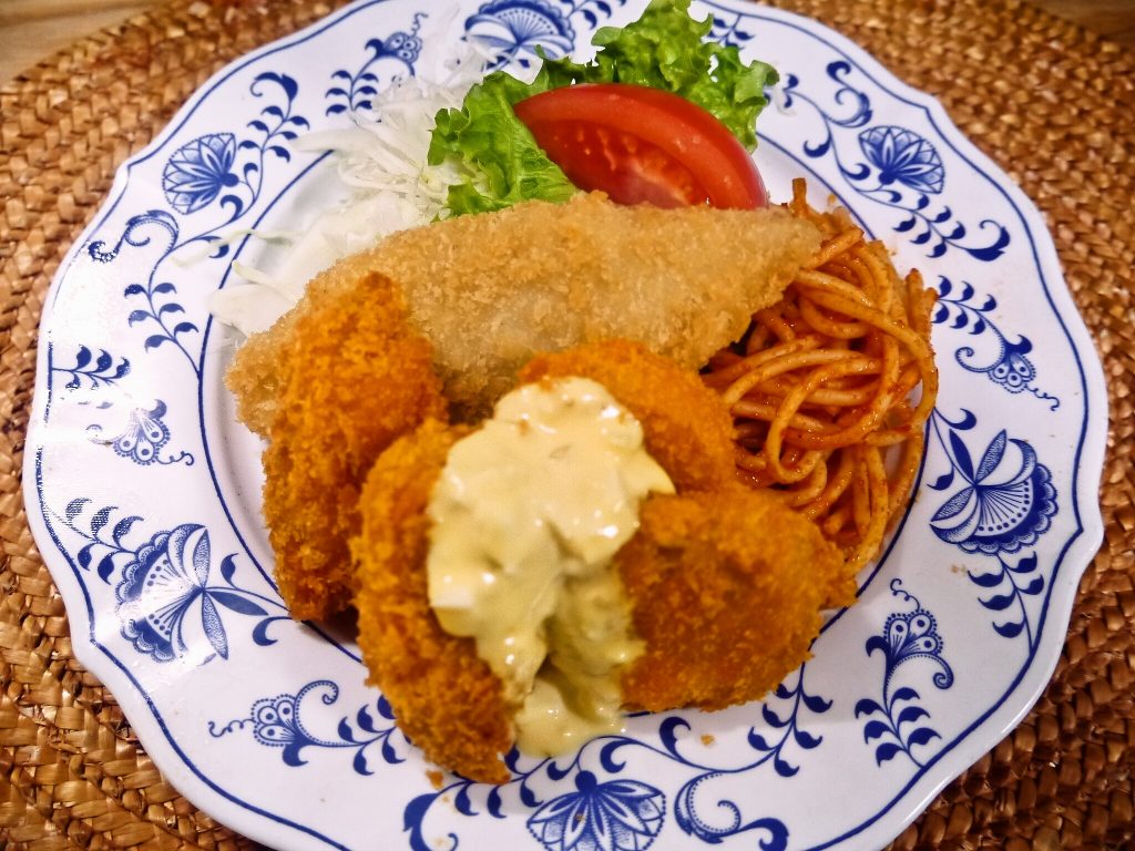 おさかなで健康的に!☆おさかな定食650円【ミックスフライ(かき)】