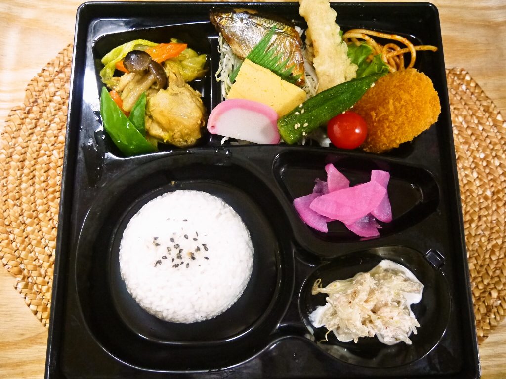 鶏肉とキャベツのカレー炒め さんまの照り焼き えび天 等