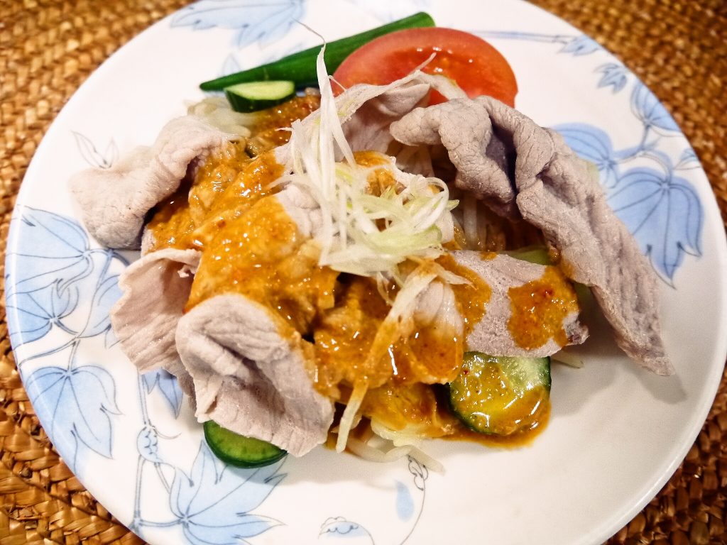 ☆すずらん定食550円【ゆで豚と野菜のピリ辛胡麻ソース】