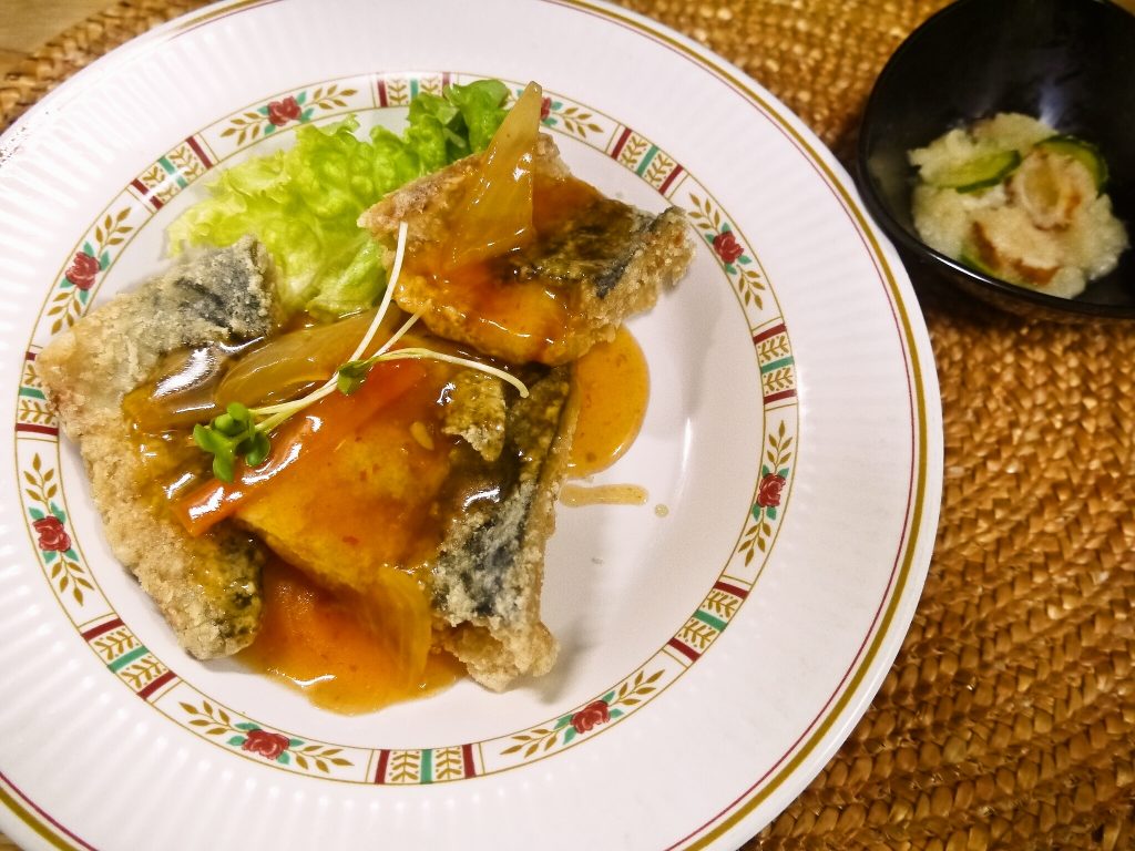 おさかなで健康的に!☆おさかな定食650円【さば唐揚げピリ辛あんかけ】