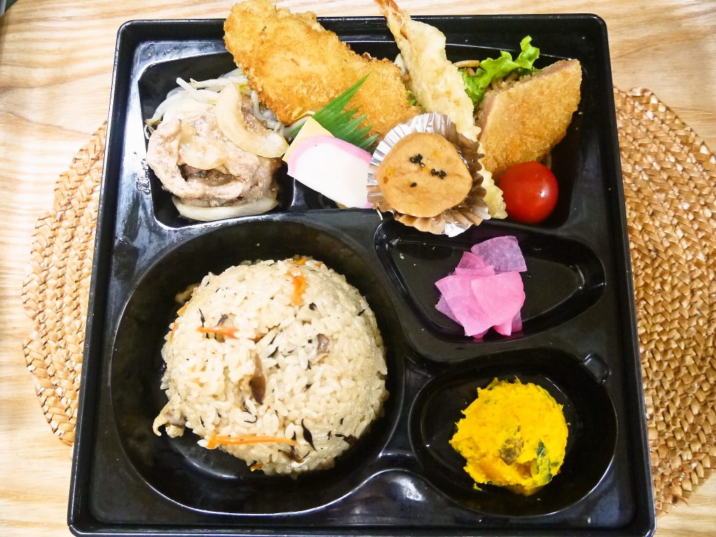 鶏五目炊き込みご飯 豚肉の生姜煮 白身魚のフライ 等