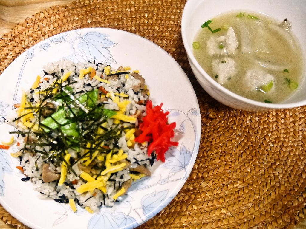 ☆すずらん定食550円【鶏ひじきご飯と海老すりみ汁】