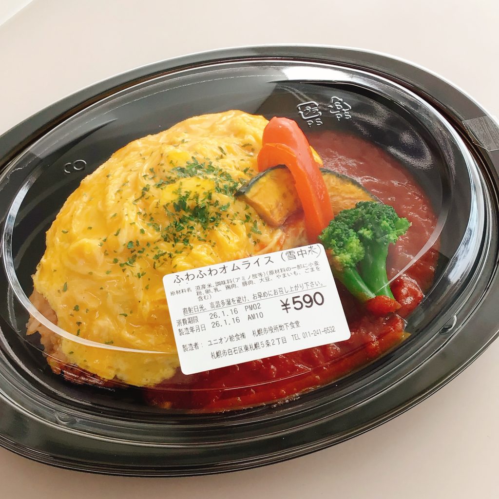 お弁当は3日間の日替わりで、本日は「ふわふわオムライス(雪中米)590円」です。