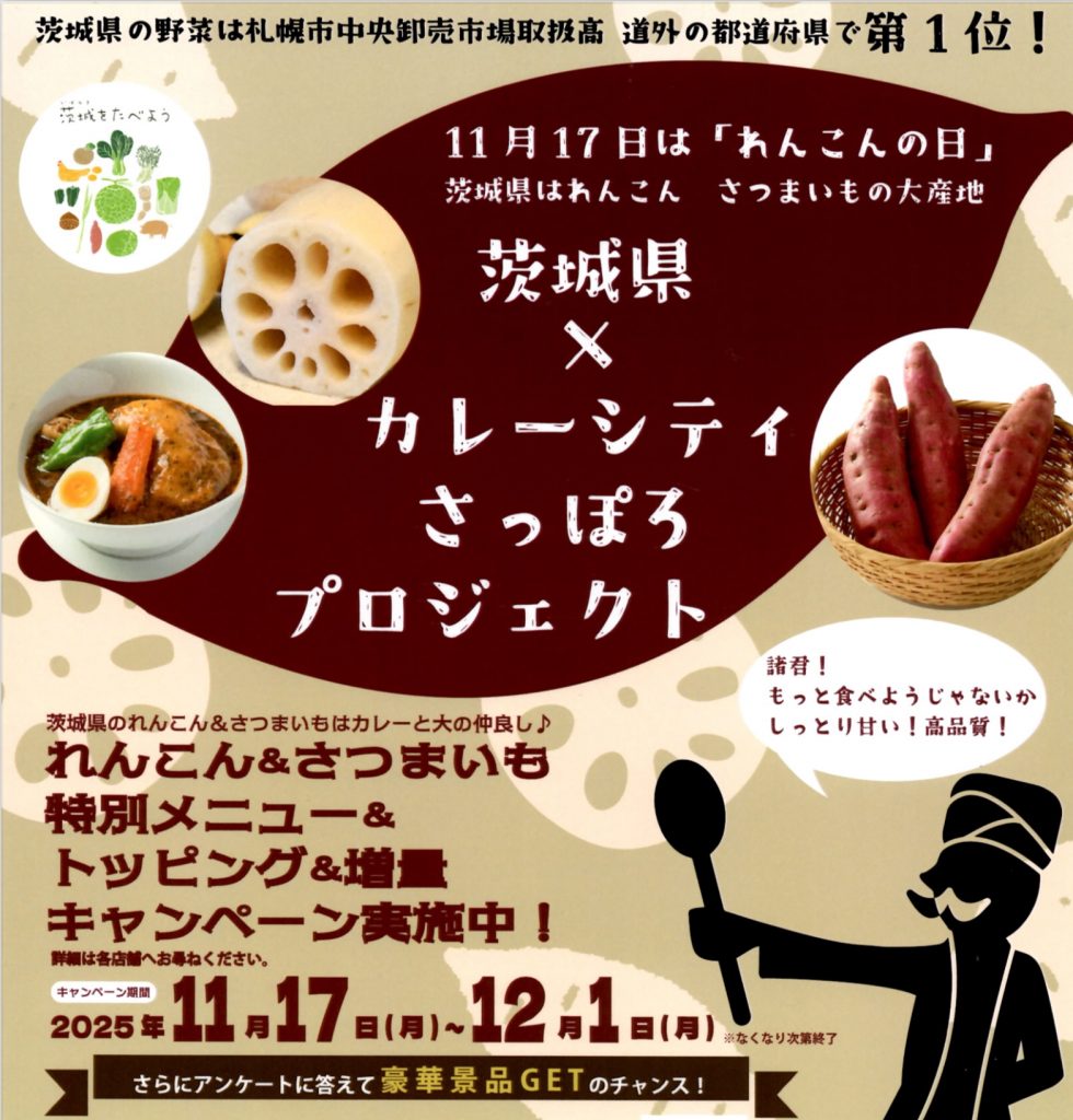 本日11/17(月)より、「茨城県×カレーシティさっぽろプロジェクト」が始まります。