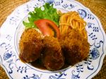 豚肉とキャベツのカレー風味、さば照り焼き、海老と椎茸の天ぷら、焼き鶏、春巻き、フキの煮物