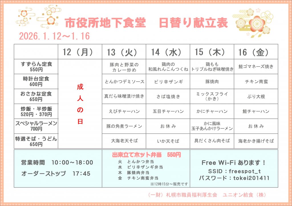 札幌市役所の地下食堂です。