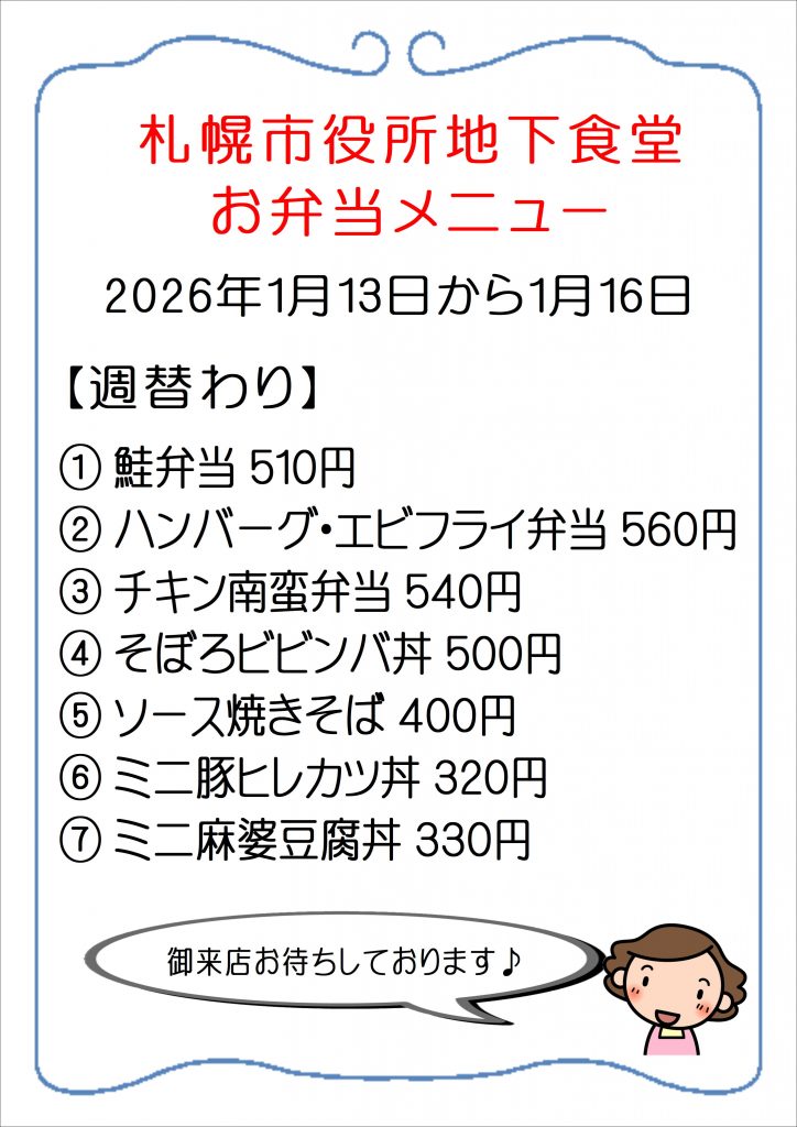 1月13日~1月16日のおすすめお弁当メニューです!