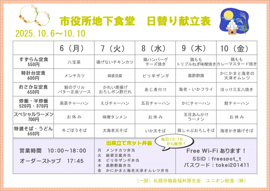 - 10月20日~10月24日のおすすめ献立表です! - 2025年10月16日