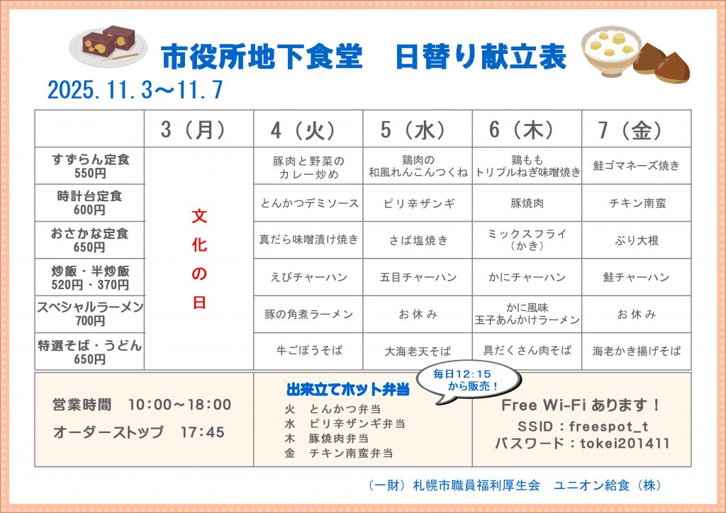 札幌市役所の地下食堂です。