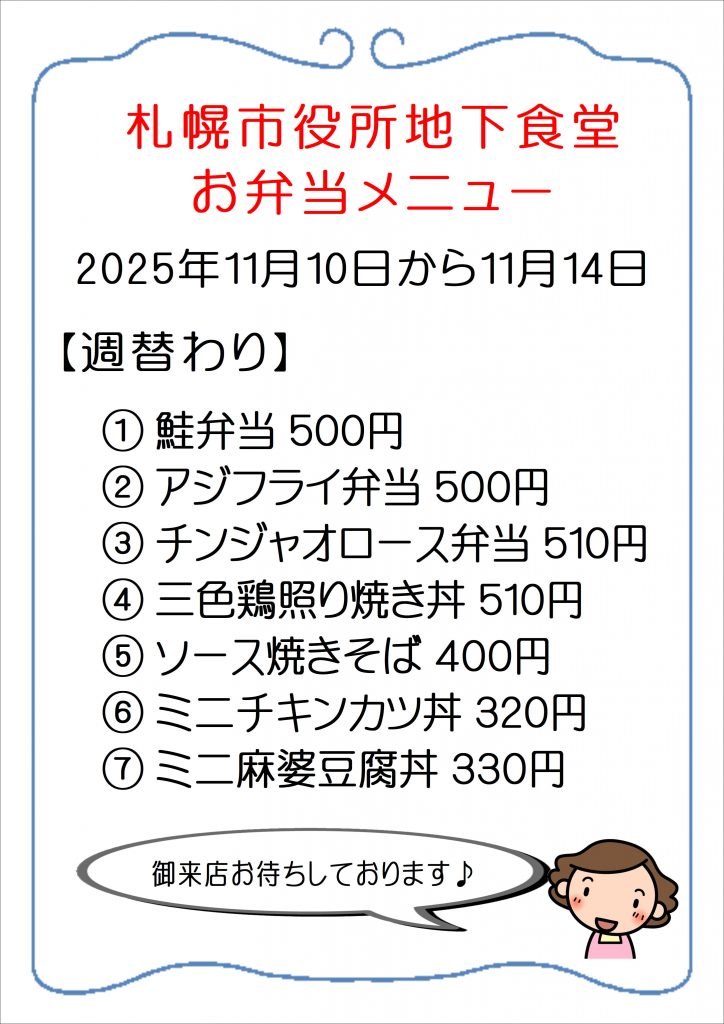 11月10日~11月14日のおすすめお弁当メニューです!