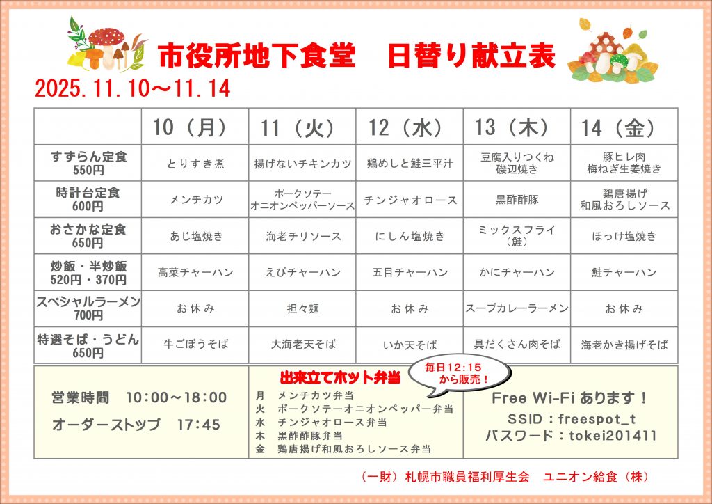 11月10日~11月14日のおすすめ献立表です!