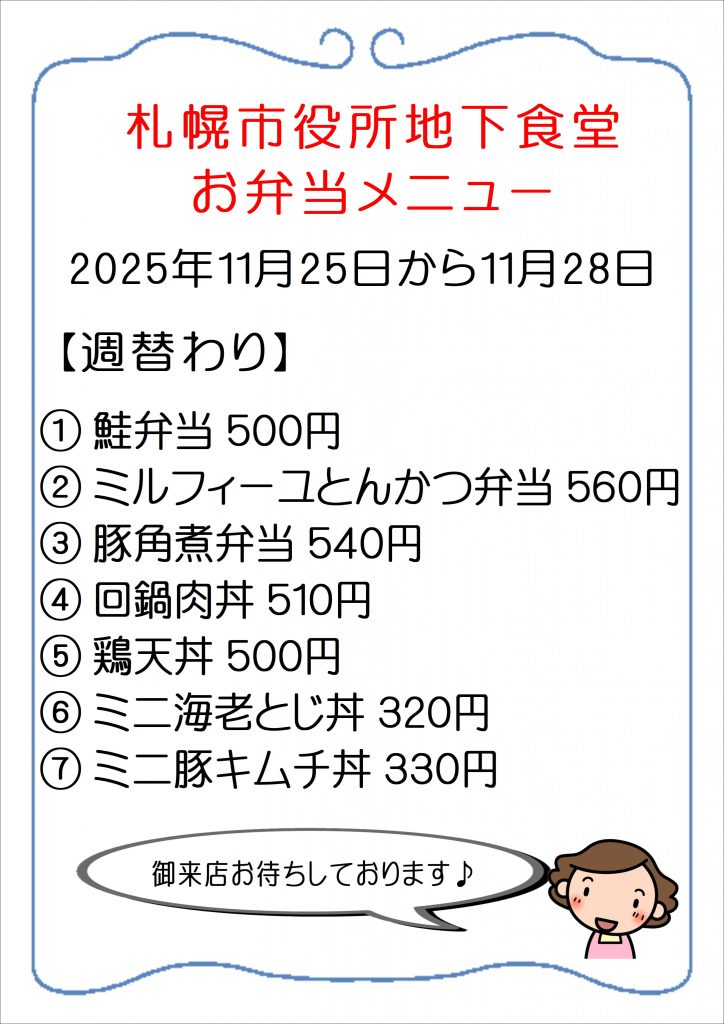 11月25日~11月28日のおすすめお弁当メニューです!
