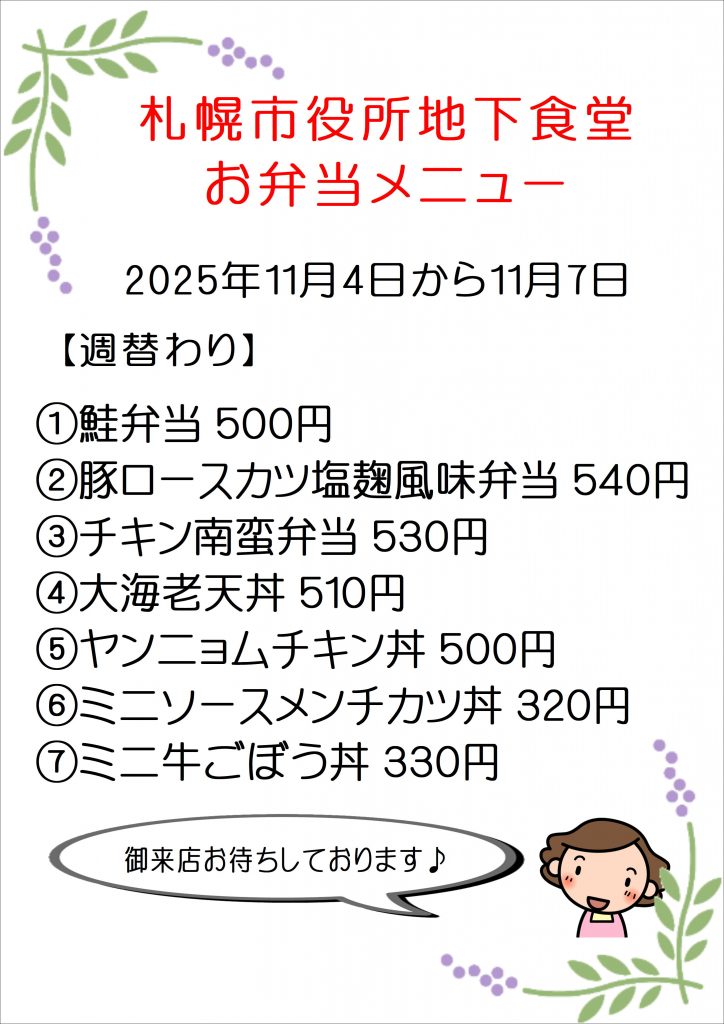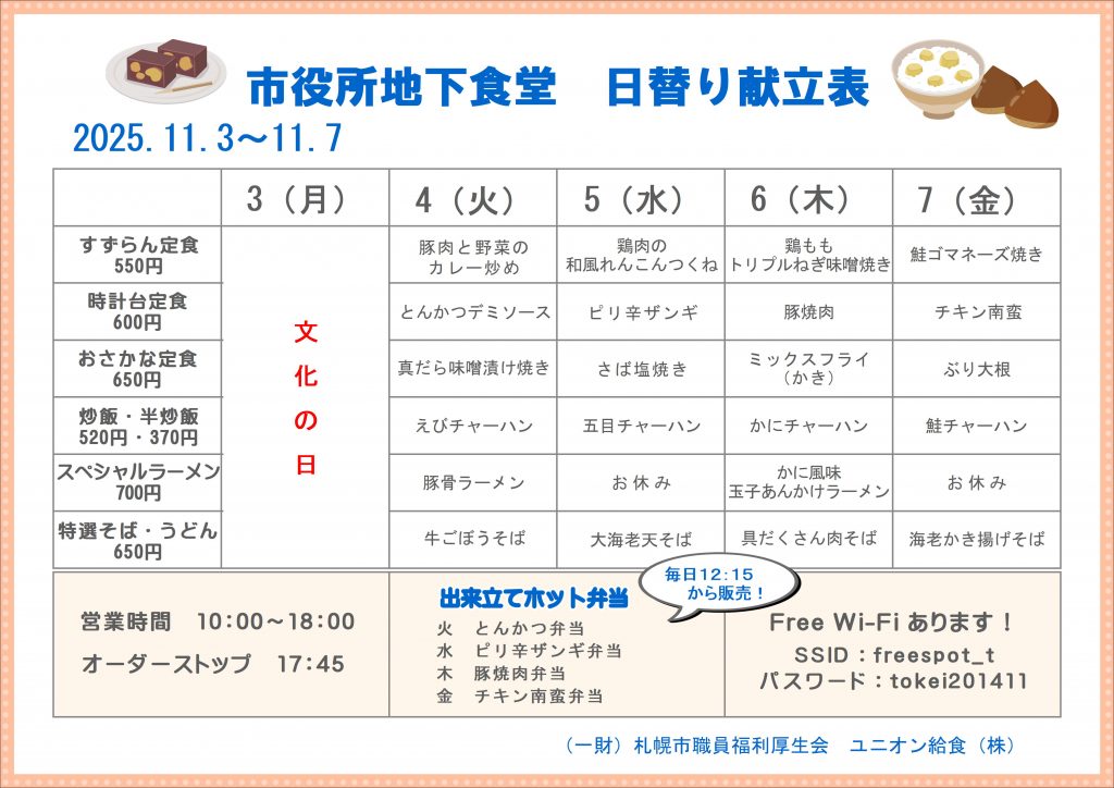 - 11月3日~11月7日のおすすめ献立表です! - 2025年10月30日