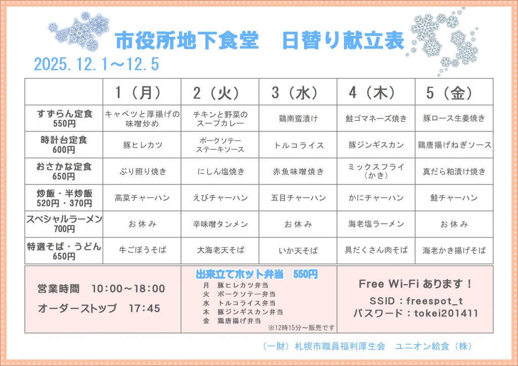 - 12月8日~12月12日のおすすめ献立表です! - 2025年12月4日