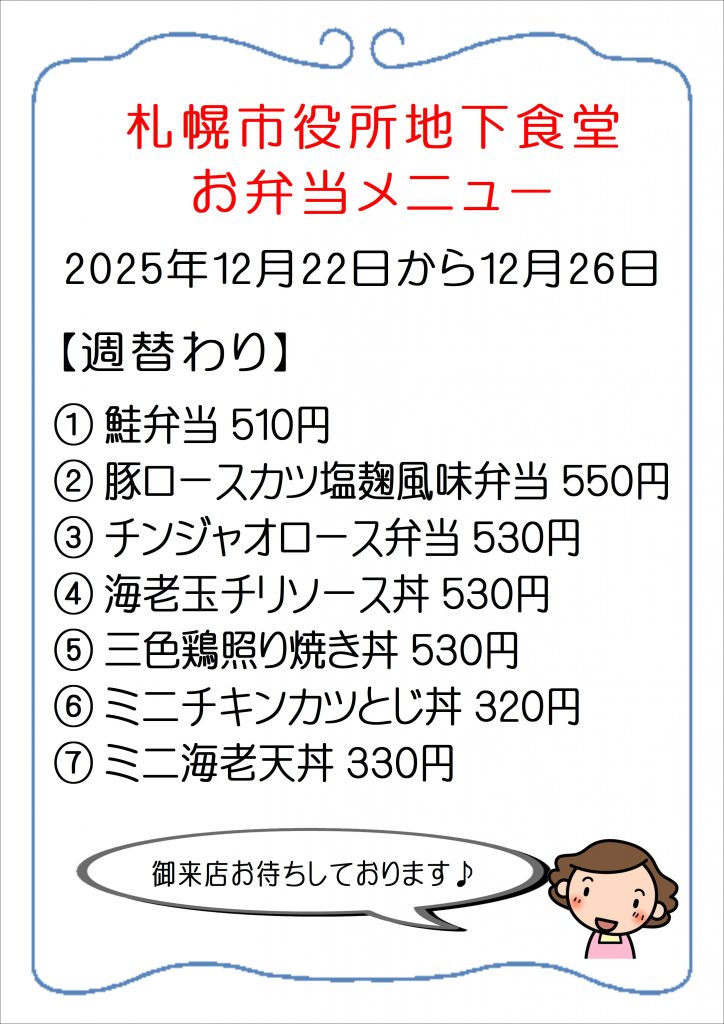 12月22日~12月26日のおすすめお弁当メニューです!