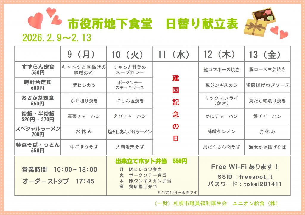 - 2月9日~2月13日のおすすめ献立表です! - 2026年2月5日