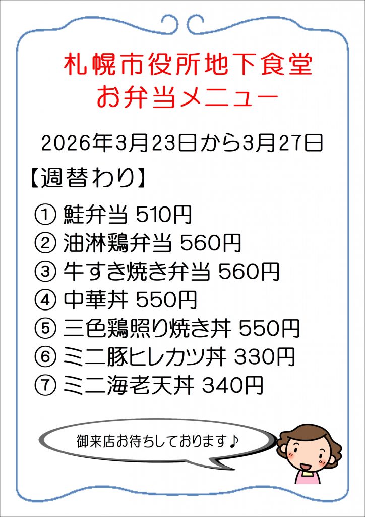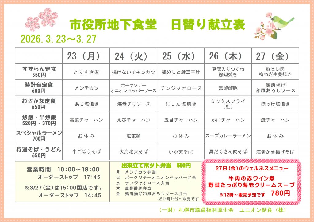 - 3月23日~3月27日のおすすめ献立表です! - 2026年3月19日