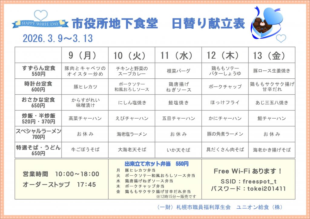 札幌市役所の地下食堂です。