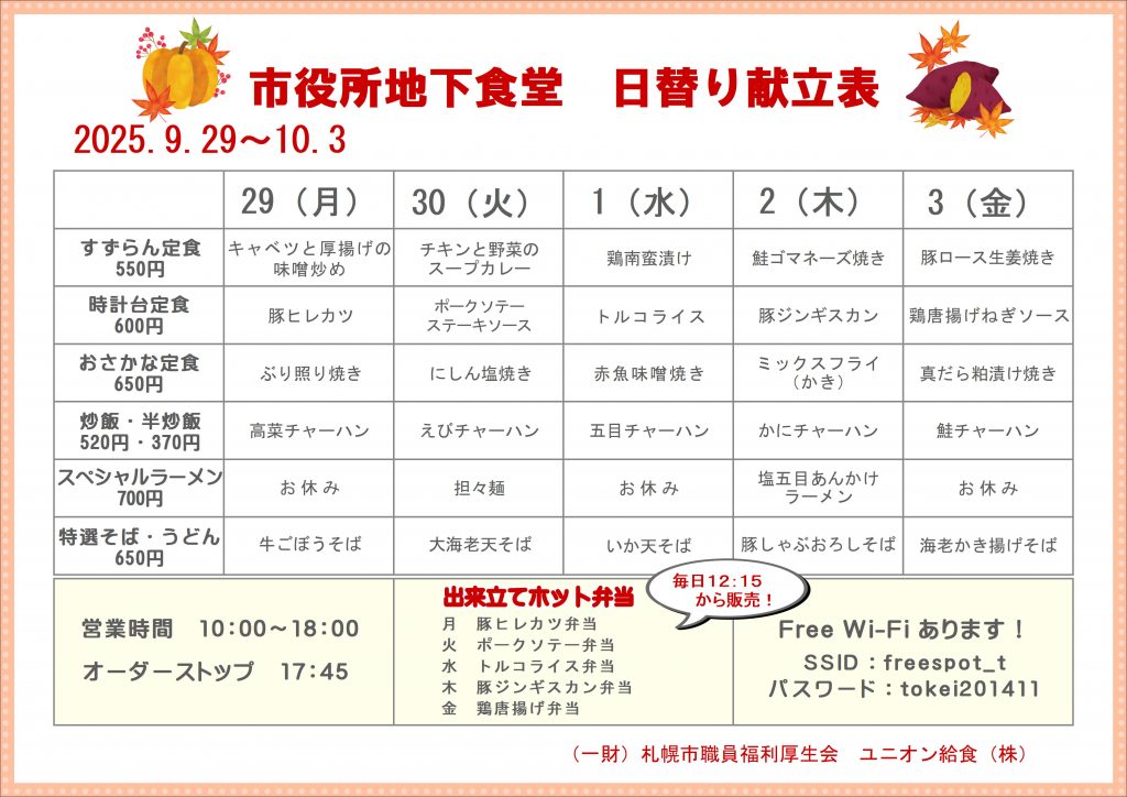 - 10月20日~10月24日のおすすめ献立表です! - 2025年10月16日
